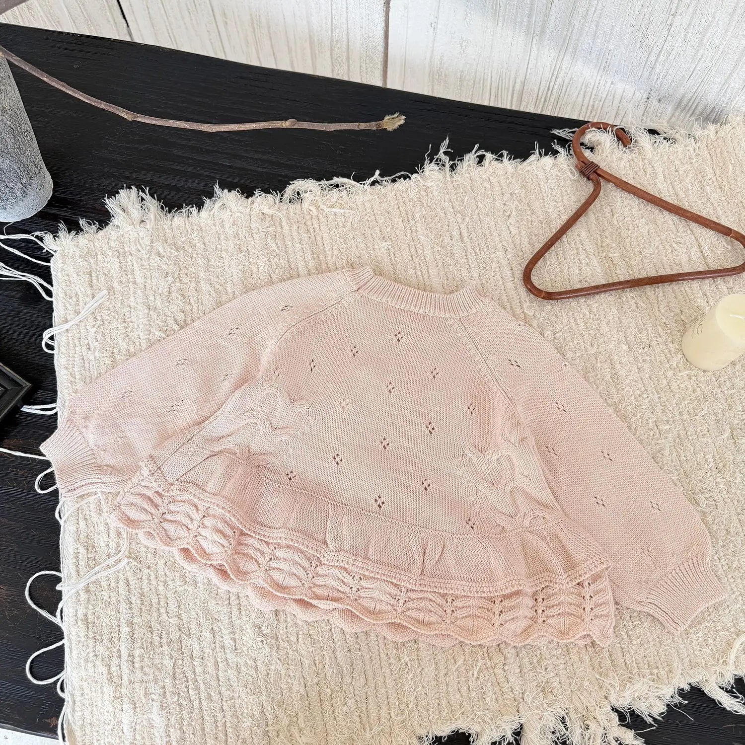 Soft as a whisper and full of charm, the Éliette Knit Sweater is designed for little girls aged 0 to 4 years. Crafted from gentle cotton knit, it offers cozy warmth while remaining light and breathable — perfect for autumn and winter layering.